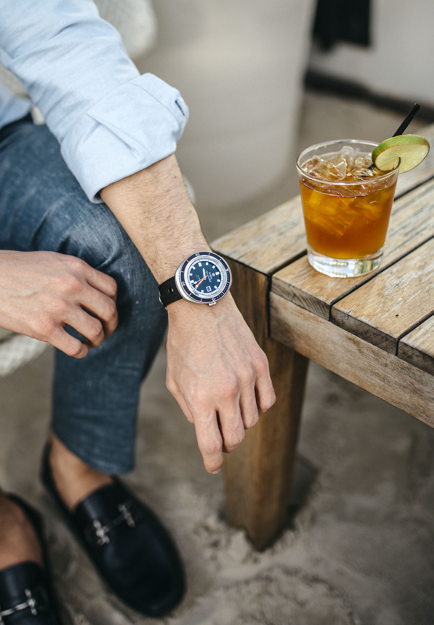When he’s not helping me run AiW he’s an avid reader who enjoys cooking, all things tech, and scuba diving. He wants me to go diving but I’m scared! Are any of you scuba divers too? I love that this watch reminds him of the sea but is completely stylish on or off the dive boat.