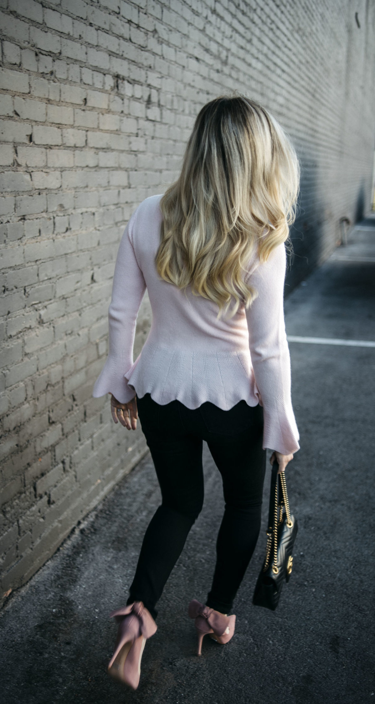 This pink peplum sweater is so soft and can be worn in the office or if you’re going out for date night. It comes in three colors and is such a classic style you’ll finding yourself wearing it over and over. I’m wearing it with my FAVORITE black jeans (they are truly the best) and these adorable pink bow back heels. They have been so popular on Instagram! And if pink isn’t your thing, they come in black too.